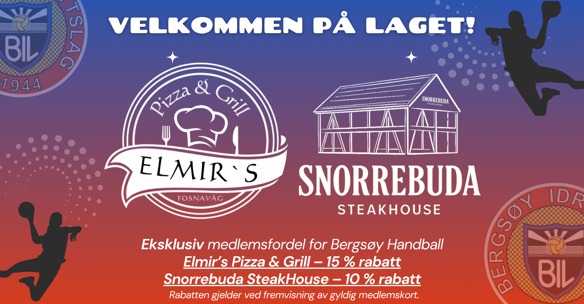 Vi er stolte over å ønske @Elmir’s Pizza & Grill og @Snorrebuda SteakHouse velkommen på laget som nye sponsorer av Bergsøy! 🤾‍♀️