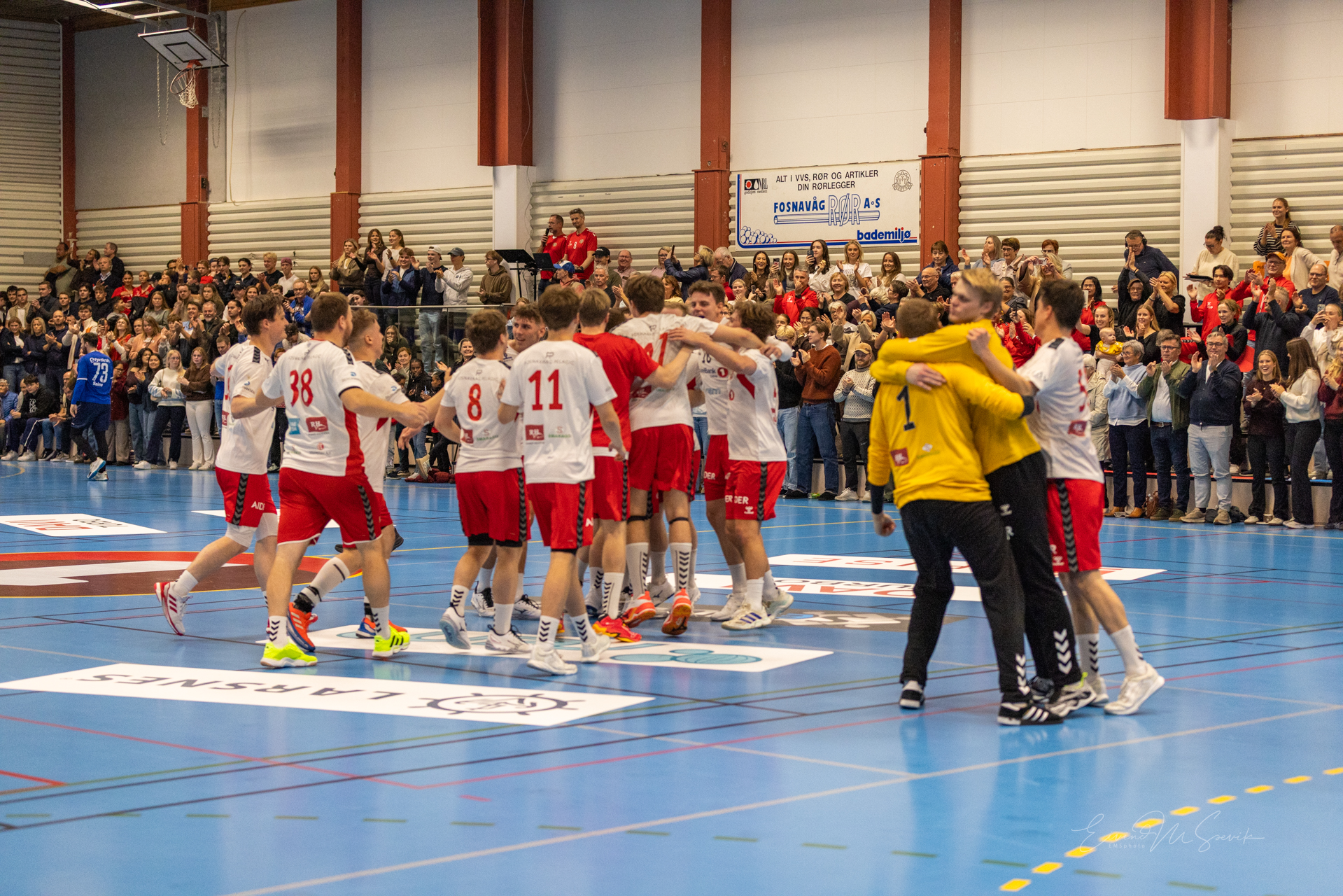 Bergsøy jublar etter 36-30 førre møte mellom dei to laga (Foto: Eivind Sævik)